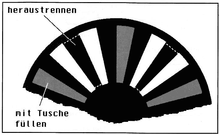 Wenden wir uns zuerst dem Problem zu, wie man die Auflösung verringert. Dieses Verfahren eignet sich für alle Mäuse, die die Bewegungen der Kugel über Schlitzmasken an sogenannte Gabellichtschranken weitergeben. Über die Schlitze und Stege der Maske werden zwei Lichtschranken abwechselnd verdeckt und freigegeben, wodurch die Richtung der Bewegung erkannt wird. Je höher die Auflösung der Maus, umso dichter und schmaler sind Schlitze und Stege angeordnet. Man kann die Auflösung halbieren, indem man jeden dritten Steg der Maske mit einem scharfen Messer heraustrennt (Abbildung 1). Um die Stege in der Breite wieder anzupassen, müssen die verbliebenen (schmalen) Schlitze geschwärzt werden. Am leichtesten geht dies mit schwarzer Tusche, die sich durch die Oberflächenspannung gleichmäßig über den Schlitz verteilt und dann zu einem Film eintrocknet. Man sollte diese Prozedur ruhig mehrmals durchführen, da sich nach dem Trocknen meistens ein paar Schlitze wieder öffnen. Möglich wäre stattdessen auch ein Überkleben mit undurchsichtigem Klebeband, was aber in eine frustrierende Feinarbeit ausartet; davon ist eigentlich nur abzuraten. Nach erfolgreichem Tuning läuft die Maus fortan mit halber Geschwindigkeit.