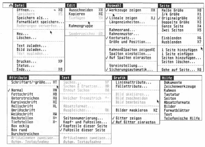 Bild 8: Die Menüs des Timeworks Publishers 2
