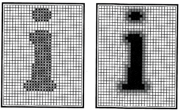So lange bei der Analog/Digital-Wandlung im Scanner nur zwischen ganz hell (weiß) und ganz dunkel (schwarz) unterschieden werden soll, wäre das ganze Verfahren kaum der Rede wert. Da wird ein sogenannter Pendelwert vom Scanner berücksichtigt, der helleren Werten einfach weiß' (= logisch 1) und eher dunkleren Werten ‘schwarz’ (= logisch 0) zuordnet. Aber sobald mit mehreren Graustufen gearbeitet wird oder sogar zwischen Farbnuancen unterschieden werden soll, muß der Scanner schon einiges leisten. Für jede Farbinformation und jede Abstufung gibt es dann einen anderen Wert.