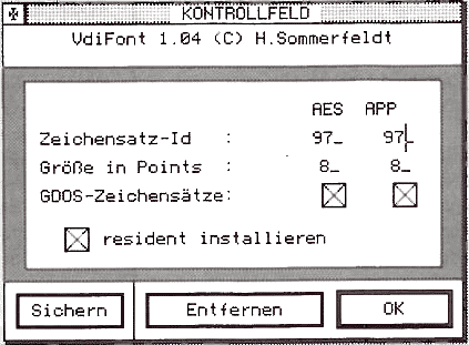 Bei der Suche nach mehr Übersicht ist man nicht unbedingt auf einen größeren Monitor und Grafikkarte angewiesen. VDI-Font bietet per Software die Einrichtung eines beliebigen unproportionalen GDOS-Zeichensatzes als Systemzeichensatz, wie es ATARI für MultiTOS ebenfalls vorsieht. Fortan kümmert sich VDI-Font darum, daß für sämtliche Ausgaben der GDOS-Zeichensatz verwendet wird. Dialogboxen, Menüs und Fensterelemente werden dabei in ihrer Größe automatisch angepaßt. Das Programm selbst kommt in den AUTO-Ordner bzw. wird unter MiNT über die Konfigurationsdatei MINT.CNF gestartet. Mit einem CPX für ATARIs modulares Kontrollfeld läßt sich dann der Zeichensatz auswählen.