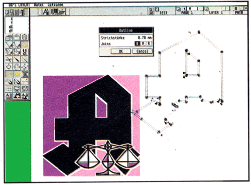 Als weitere sinvolle ErgĂ€nzung zeigt âĂ€sâ bereits zur ProTOS in Ulm ein neues Bildfiltermodul. Dieses Modul ermöglicht unter anderem Funktionen wie Verwaschen, SchĂ€rfen und Dithern von Bildern direkt im Calamus-Dokument. Die Funktionen können dabei auf beliebige Calamus-Rahmentypen angewendet werden, die dazu in Bildrahmen umgewandelt werden. Es lassen sich ĂŒbrigens Floyd-Steinberg-Dither mit einer Zufallsverteilung der Punkte (!) erzeugen, wodurch eine wesentlich bessere Druckausgabe auf Laser- und Farbtintenstrahldruckern erreicht wird.