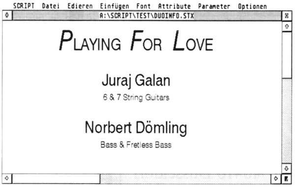 Erst einmal muss Speedo für 99 DM gekauft und installiert werden, was relativ einfach zu bewerkstelligen ist. Im Speedo-Grundpaket sind schon vierzehn gut gelungene Zeichensätze vorhanden, die nun in Script 3.5 in allen möglichen Punktgrößen einsetzbar sind.