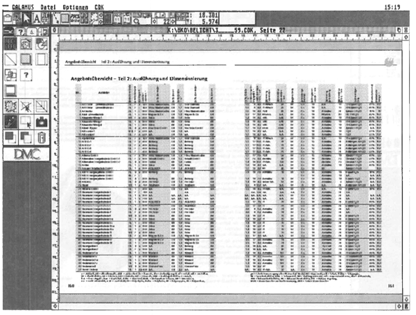 Auch umfangreiche Tabellen müssen ins Layout eingebunden werden. Tabellensatz ist nun wirklich keine Stärke des Calamus, und die Daten kamen dann auch noch aus 'Excel' vom PC! In einem der nächsten Teile unserer kleinen Artikelserie werden wir sehen, wie dieses Problem gelöst wurde.