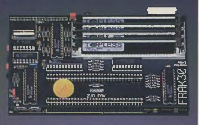 Eine der erfolgreichsten Beschleungerkarten, die PAK68/3, hat Zuwachs bekommen. Mit dem aussagekräftigen Namen FRAK30 wurde eine Erweiterungskarte bezeichnet, die die PAK um schnelles, 32 Bit breites Fast-RAM erweitert. Vorbei sind damit die Zeiten der Speicherknappheit.