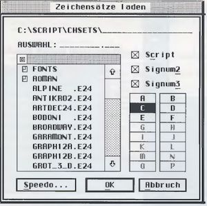 Eine neue File-Selektorbox und eine eigene Box zum Verwalten der Fonts erleichtert jetzt den Umgang mit Speedo-, Signum2 und Signum3 Fonts.