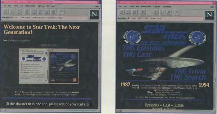 Ein Dokument im WWW (Abbildung links). Klickt man in das rechte Bild, gelangt man zur nächsten Seite (Abbildung rechts).