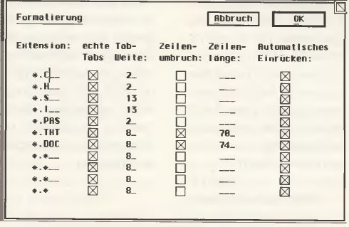 Steht in der Kürzeldatei z.B. der Eintrag ‘writeln(-)’ und tippt man im Editor ‘wr-< ESC >‘, so steht anschließend der Eintrag ‘writeln()’ imText.und derCursor steht genau zwischen den Klammern. Für den Fall, daß man eine Abkürzung verwenden will, die mit dem Eintrag am Anfangnicht übereinstimmt, so kann man ein Gleichheitszeichen in der Kürzeldatei verwenden. Der Eintrag könnte dann z.B. so aussehen: ‘Anr =Sehr geehrte Damen und Herren'. Im Text tippt man nun das Kürzel ‘Anr’ ein, und durch anschließendes Drücken der Escape-Taste erscheint dann wieder ‘Sehr geehrte Damen und Herren’. Eine tolle Sache!