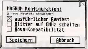 Der soeben beschriebene Geschwindigkeitsvorteil, der sich aus der Trennung in zwei unabhängige Speicherbereiche ergibt, ist allerdings auch mit einem Nachteil verbunden. Anwendungen, die mit möglichst großen zusammenhängenden Speicherblöcken arbeiten (z.B. ein Sample-Editor), können unter Umständen den noch freien Gesamtspeicher des Rechners nicht optimal nutzen. Die meisten Anwendungen merken jedoch nichts von dieser Trennung, da das Betriebssystem bei Speicheranforderungen selbständig auf den jeweils anderen Bereich zugreift, wenn dies notwendig wird. In welchem Speicherbereich ein Programm ausgeführt wird und ob bevorzugt TT-RAM oder ST-RAM vergeben wird, läßt sich über zwei Flags im Header des Programm-Files bestimmen, zu deren Manipulation ein kleines Programm mitgeliefert wird. Wie sich gezeigt hat, sind bei den meisten Programmen die entsprechenden Flags bereits gesetzt.
