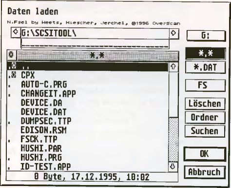 Als Dateiauswahlbox liegt N.Fsel bei, das auch in der Lage ist, lange Dateinamen anzuzeigen. Wichtig ist dies dann, wenn man ein MiNT-kompatibles XFS (eXtended File System) installiert hat, das solche Dateinamen unterstützt. Dies ist bei dem bekannten Minix-File-System der Fall, das nicht nur für den ATARI unter MiNT, sondern auch für andere Computerplattformen existiert. Da der Thing-Desktop ebenfalls lange Dateinamen unterstützt, sollte man meinen, daß Namen mit nur 8+3 Zeichen bald der Vergangenheit angehören dürften. Leider kommen aber viele Anwendungen für den ATARI mit den langen Namen nicht klar, so daß hier schon seit Jahren großer Nachholbedarf besteht.