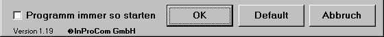 Der Default-Button erlaubt eine zentrale allgemeine Einstellung für den Start von ATARI-Programmen, die keine eigene T2W-Datei besitzen. Sinnvollerweise sollten Sie eine Default Einstellung wählen, mit der im allgemeinen alle ATARI-Programme zurechtkommen.