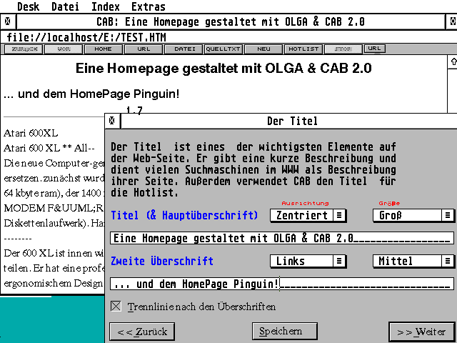 Es befindet sich leider kein entsprechendes Verbindungsprogramm im Lieferumfang und das Handbuch erwähnt noch nicht einmal, welche Programme es denn gäbe. CAB arbeitet jedoch nach wie vor durch die entsprechenden Plug-Ins mit STiK und MiNTNet zusammen. Für den Einsteiger wäre es durchaus hilfreich, auf die Online-Möglichkeiten einzugehen, denn fast jeder, der CAB benutzt, wird es irgendwann auch Online einsetzen möchten.