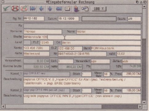 Ein völliges Novum im Office-Bereich ist die Möglichkeit, Hypertext-artige Verknüpfungen aus papyrus-Textdokumen-ten heraus zu bestimmten Datensätzen zu erstellen - dies gibt es so bei keinem anderen Programm, egal, ob auf dem Atari oder einem anderen Betriebssystem.