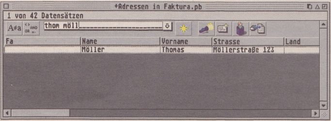 Exemplarisch sei hier nur das Suchen aufgeführt: In beliebiger Volltextrecherche können Sie einfach Wortanfänge beliebiger Wörter Ihres Datensatzes angeben und so mit minimalem Aufwand blitzschnell den richtigen Datensatz finden. Schon beim Tippen werden die Datensätze auf nur noch alle gültigen reduziert. Sie sehen gleich beim Eintippen der Suchbegriffe, wann Sie aufhören können, weil Sie bereits den oder die gewünschten Datensätze gefunden haben. So tippen Sie für einen gesuchten Herrn "Thomas Möller" einfach "möl thom" oder auch "thom möl", und meist dürfte das schon reichen, um den oder die gewünschten Datensätze gefunden zu haben. Warum gibt es diese gute Idee eigentlich erst jetzt?
