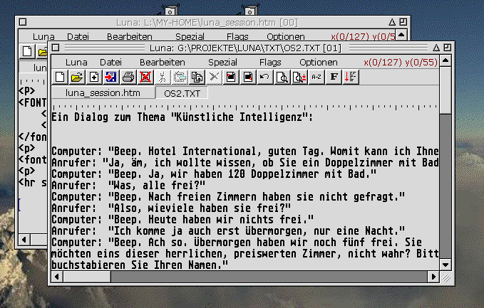 Wirft man einen Blick auf das Screenshot zu Luna, ist unschwer zu erkennen, dass es sich um ein klassisches und ansprechendes GEM-Programm mit der Optik modernerer Software – auch gemessen am PC- und Mac-Markt – handelt. Luna dient der Erfassung von Texten aller Art. Dazu gehören Briefe ebenso wie Programmlistings und HTML-Sourcecodes. Eine Reihe von wichtigen Funktionen und Innovationen erleichtern den täglichen Umgang mit Texten.