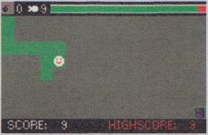 Im ersten Spiel des Moduls muß der Spieler die Rolle einer Schlange übernehmen und in der geforderten Zeit sämtliche Äpfel vom Spielfeld fressen (hat eigentlich schon einmal jemand eine Schlange einen Apfel fressen sehen?). Durch die permanente Nahrungsaufnahme wird diese natürlich stetig länger und die Navigation wird zunehmend schwieriger.