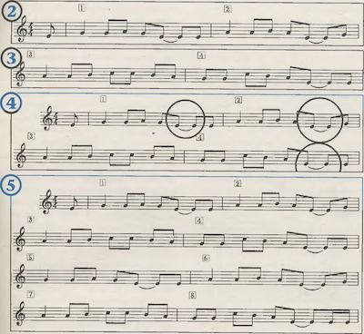 Haben Sie jetzt einen Knoten in den Fingern? Wenn nicht, können Sie dieselben Kommandos wie in Takt 10 auch für den nächsten Takt verwenden (lassen Sie das letzte Kommando einfach weg)
