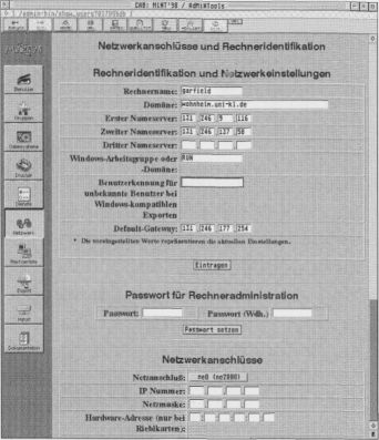 Nach der Installation können alle weiteren Konfigurationsarbeiten - und damit auch das Einstellen der IP-Adressen, das Vergeben der Ersatznamen und das Tätigen der Angaben über die DN-Server - über die AdMiNTools vorgenommen werden (Abbildung 1).