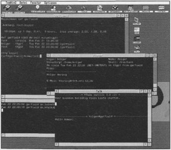 eMail (Abbildung 4), WWW, Talk/Chat (Abbildung 5) und ftp sind inzwischen geläufige Begriffe. Auch mit den Diskussionsgruppen (News) sind viele vertraut. Zum Datenaustausch gibt es neben ftp, wo Dateien erst mit einem FTP-Programm auf den lokalen Rechner geladen werden müssen (Abbildung 6) aber auch noch andere Möglichkeiten. Beim sog. file sharing (engl. „Datei-Teilen") können Dateiordner, die auf einem Rechner liegen, auch auf einem anderen Rechner „eingeblendet" werden. Dort kann man dann mit den Dateien aus dem Ordner arbeiten, als läge der Ordner auf einem lokalen Medium.