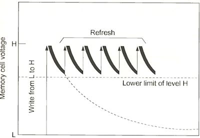 Leckströme sorgen dafür, dass sich die Kondensatoren entladen. Daher ist das Auffrischen des Speicherinhaltes unabdingbar.