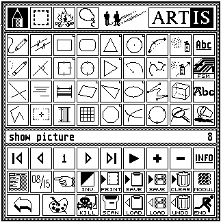 Die Animationsfähigkeiten von Artis entsprechen ziemlich genau denen von Prism Paint. Mit der Steuerung auf dem Hauptdialog wird zwischen den einzelnen Bildern (Frames) umgeschaltet. Wird ein neues Frame eingerichtet, enthält es zunächst den Inhalt vom Vorgängerbild. Durch Veränderung wird der Daumenkino-Effekt erreicht, die Flüssigkeit der Animation hängt natürlich auch von der Anzahl der Frames ab. Jedes Frame belegt aber Platz im Speicher und im Gegensatz z.B. zu Deluxe Paint kennt Artis keine Shapes, die einem Bewegungspfad folgen.