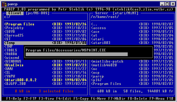 Wer häufig Dateien zwischen zwei Rechnern austauscht und den Aufwand scheut, mit MiNT ein richtiges Netzwerk aufzubauen, sollte sich PARCP einmal näher anschauen.