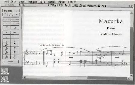 Schon bei meinem zweiten Musikprogramm namens ORCHEST, bei dem die Musikstücke in Form einer ASCII-Datei eingegeben wurden, tauchte der Anwenderwunsch nach Notation auf. Ich fügte damals eine Umwandlung der ASCII-Datei in Notengrafik hinzu. Aber die Anwenderwünsche gingen weiter. Man wollte anstatt der Eingabe über die ASCII-Datei die direkte Noteneingabe. Dies war eine derart grundlegende Änderung, dass eine Neuprogrammierung erforderlich wurde. So begann ich 1995 mit meinem dritten Musikprogramm, dem heutigen MusicEdit. Hier konnte man in einem Eingabedialog alle Eigenschaften einer Note einstellen, und diese wurde dann an der Stelle gezeichnet, auf die man mit der Maus geklickt hatte. Auch diese Eingabemethode ließ immer noch Anwenderwünsche offen. Die Anwender wollten unbedingt aus einer Art Toolbox Noten mit der Maus herausholen und sie an die gewünschte Stelle platzieren. Mein Gegenargument, dass man mit diesem Verfahren nur die grundlegenden Eigenschaften einer Note oder Pause festlegen kann und dann nachträglich alle weiteren Eigenschaften in einem zweiten Arbeitsschritt eingeben muss, zog bei den Anwendern nicht. Ich habe dann meine persönliche Ansicht hintan gestellt und auch diesen Anwenderwunsch erfüllt. So verfügt heute MusicEdit über eine voll grafische Eingabe, die dem heutigen Standard entspricht.