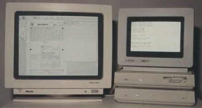 Zum Preise von 5500 Mark vertreibt Matrix einen Monitor der Firma Moniterm, die Controller-Karte, Anschlußkabel und eine Diskette mit Treibersoftware. Die Bildmatrix des M110 ist mit 1280 x 960 Pixel mehr als viermal so groß wie die Matrix des ST-Originalmonitors. Die nutzbare Bildfläche mit zirka 36 x 28 cm besitzt eine Auflösung von knapp 90 dpi, sie ist also um etwa 15 Prozent höher als die 78 dpi des SM124. Die vertikale Bildwiederholungsrate von 70 Hz garantiert ein scharfes Monochrombild.
