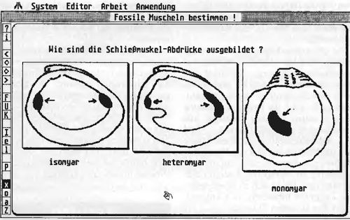 Für diese Anwendungen entwerfen Sie erstmal die notwendigen Karten. Dazu verwenden Sie Texte, Bilder und sog. Buttons. Während die ersteren zwei hauptsächlich der Informationsvermittlung dienen, steuern Sie mit Buttons den Ablauf der Anwendung. Durch Anklicken der Buttons teilt der Benutzer später dem Computer seine Antworten mit. Das kann eine simple Ja/Nein-Entscheidung ebenso sein wie eine mehrstufige Auswahl. Diese Bedienung über Buttons ist für den (möglicherweise unerfahrenen) Anwender die einfachste und bequemste Methode, mit der Anwendung zurechtzukommen. Tiefergehende Kenntnisse über den Umgang mit Computern erfordert das Programm nicht.
