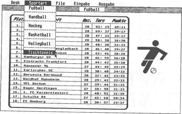 Ein weiteres Programm zum Aufstellen von Sporttabellen und Verwalten von Spielergebnissen stellen wir auf Seite 140 vor.