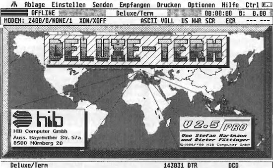 Neben den üblichen Einstellungen der RS232-Schnitt-stelle bietet »Deluxe/Term« eine 1200/75 Baud-Unterstützung. Die Bezeichnung »Baud« stammt aus Urzeiten der Datenfernübertragung, nämlich vom Morsen und bedeutet sinngemäß Bits pro Sekunde. Die exotische Übertragungsrate 1200/75 fand in der Mitte der 80er Jahre große Verbreitung durch die Akustikkoppler der »Dataphon«-Serie. Diese waren technisch nicht in der Lage, sowohl Sender als auch Empfänger 1200 Baud zur Verfügung zu stellen. Da in der Regel aber der Angerufene wesentlich mehr sendet als der Anrufende, war es sinnvoll, mit einfacher Technik dem Angerufenen dadurch höhere Übertragungsraten zu schaffen, daß man die des Anrufenden drastisch beschnitt. Kein DFÜ-Programm konnte bisher diese »Oldtimer« im Baudratensplitting korrekt ansteuern. »Deluxe/Term« erlaubt dies und zeigt damit deutlich seine deutsche Herkunft, waren in nahezu allen anderen Ländern doch längst Modems zugelassen, die durch direkte Leitungsinduktion wesentlich höhere Übertragungsraten zum gleichen Preis erzielten.