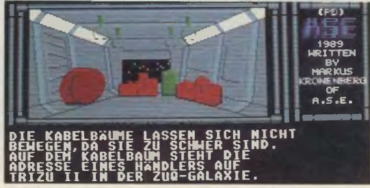 Zum Schluß ein paar Tips für den Einstieg: Alles untersuchen; was wie ein Paßwort aussieht — aufschreiben; Nicht die Schachteln offen (Neuanfang droht); Luke der Rettungskapsel vor dem Start schließen; den Planeten mit der Nummer eins ansteuern.