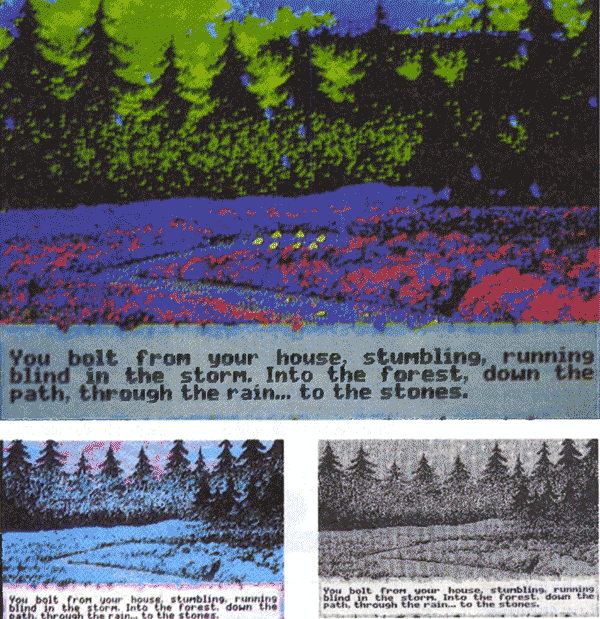 »Ultima VI« mit AT-Speed in Monochrom, CGA mit 4 und 16 Farben