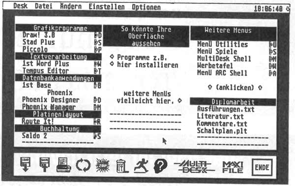 Die Textzeilen lassen sich vierfach nutzen: Sie ermöglichen erstens direkten Programmaufruf (PRG, TOS, APP) per Tastenkombination oder Mausklick. Dabei darf der Menüname unabhängig von der Applikation bis zu 20 Zeichen umfassen.