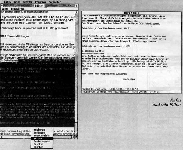 Michael Bernhards schlĂ€gt wieder zu! Rufus im neuen Gewand und vielen nĂŒtzlichen Verbesserungen. Das Beste: Auch kĂŒnftig bleibt Rufus Shareware! Mit 40 Mark sind Sie dabei im groĂen DFĂ-Zirkus!