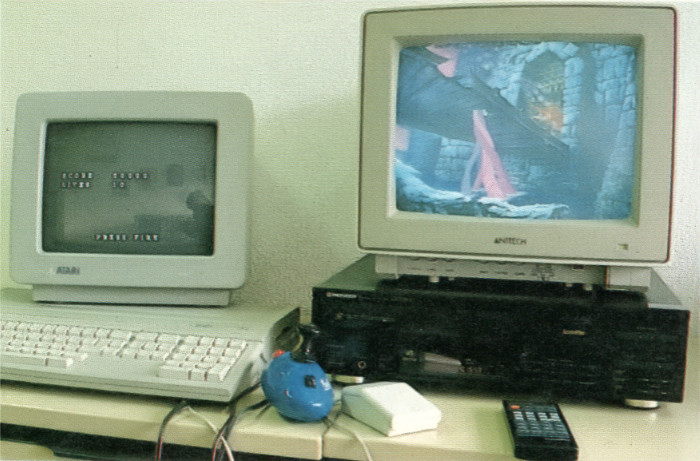 Das LDG-System hat nichts mit dem CDTV von Commodore zu tun, sondern ist eine unabhängige Entwicklung der Mannheimer. Das System läßt sich auch mit nur einem Monitor betreiben, wer allerdings Atari-Monitore verwendet (SC 1224 oder SC1435), benötigt einen RGB-Wandler, der das Fbas-Signal des Players auf den Monitorstecker des Atari-Monitors überträgt. Solche Wandler kosten ca. 250 Mark. Eine wesentlich bessere Alternative ist allerdings, einen zweiten Farbmonitor einzusetzen (mit Stereosound- und Fbas-Eingang), dann gibt der Atari-Monitor Statusmeldungen zum Spiel aus. (hu)