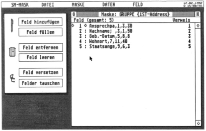 Vier kleine Hilfsprogramme stellt die Think!-GmbH aus Nürnberg vor: das 59 Mark teure »SM-Soli« ist eine GEM-orientierte Musikverwaltung zur Textverwaltung von MCs, CDs und LPs mit umfangreichen Suchmöglichkeiten. »SM-PoCo« steht für »Pocket-Computer« und bietet für 49 Mark umfangreiche Rechenfunktionen, u. a. auch finanzmathematische und hexadezimale sowie Bruchrechnen. SM-PoCo läuft auch als Accessory. »SM-Maskerade«, konvertiert ASCII- und Adimens- bzw. Depot-Daten ins 1st-Address-Format und glänzt vor allem durch Schnelligkeit und bequeme Eingabemasken. Es kostet 69 Mark. »SM-Autobackup« wird im Auto-Ordner installiert und sorgt bei entsprechend definierten Dateitypen dafür, daß sie immer doppelt gesichert werden. Das Backup läßt sich dabei auf beliebige Medien übertragen. SM-Autobackup kostet 59 Mark. Wie in den beiden Abbildungen rechts zu sehen ist, verfügen SM-Utilities über eine intuitive Oberfläche, die den Einstieg recht leicht macht. (hu)