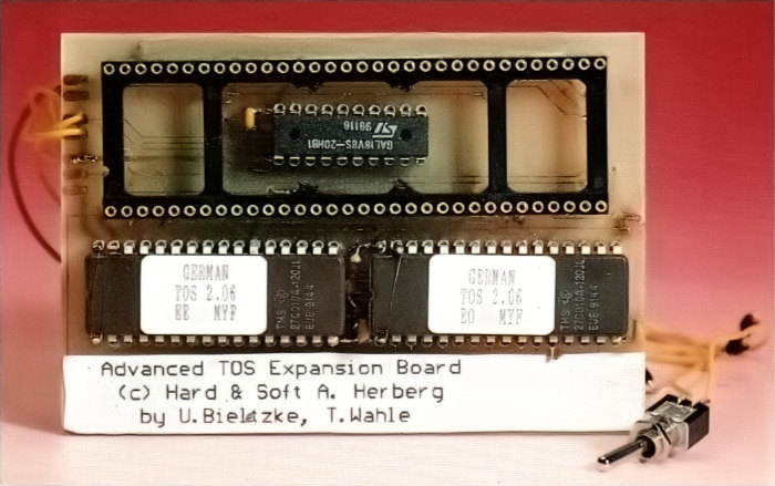 Die Fa. Hard & Soft A. Herberg bietet mit der »TOS Expansion Card« allen Anwendern, die das TOS 2.06 in den Computern der ST- und Mega-ST-Serie betreiben wollen, eine Alternative zur »TEC« von Artifex. Die Karte zeichnet sich durch eine kleine und flache Bauweise aus und soll sehr einfach einzubauen sein. Außerdem können Sie mit einem Schalter zwischen der Betriebssystemversion 1.04 bzw. 1.02 und 2.06 Umschalten. Auch ein steckbarer Einbau über die Hard & Soft Speed Bridge ist vorgesehen. Der Preis liegt bei 198 Mark.
