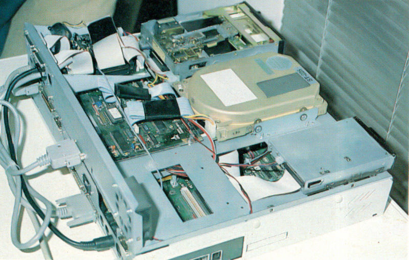Der geräumige Tower bietet vier variable Einbauplätze für Floppies und Festplatten für 5,25-Zoll- und 3,5-Zoll-Hardware. Langlöcher verschiedener Abstände erlauben paßgenaues Anbringen aller Formate. Puristen werden bemäkeln, daß die Lager senkrecht eingebauter Festplattenlaufwerke unnötig ungleich belastet werden, was natürlich die Lebensdauer des Mediums verkürzt. Manche Platten müssen für senkrechten Betrieb sogar neu formatiert werden. Senkrechter Einbau ist jedoch auch im PC-Markt durchaus üblich und ein gutes Laufwerk macht das leicht drei bis vier Jahre mit.