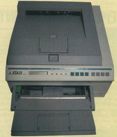 Auch den neuen Laser »SLM 406« konnte das Publikum auf dem Stand nirgendwo entdecken, obwohl er einen fertigen Eindruck hinterließ. Er druckt mit einer Auflösung von 300 x 300 dpi, verdaut Formate von DIN A4 bis DIN B5, bei einem Ausstoß von vier Seiten pro Minute. An sich sind diese technischen Daten nichts besonderes, doch die Atari-Enwickler haben sich etwas Besonderes einfallen lassen: die Anbindung an den Computer erfolgt über eine SCSI-Schnittstelle. Der SLM 406 harmoniert somit nicht nur mit Computern der TT- und Falcon-Serie, sondern auch mit den Rechnern des Mitbewerbers Apple! Dazu mußten die Ingenieure einen für Atari-Gepflogenheiten neuen Weg beschreiten: Der SLM 406 verfügt nämlich als erster Laser von Atari über ein eigenes Gedächtnis. Wie groß dieses sein kann, blieb allerdings — wie so vieles auf dieser Messe — ein Geheimnis.