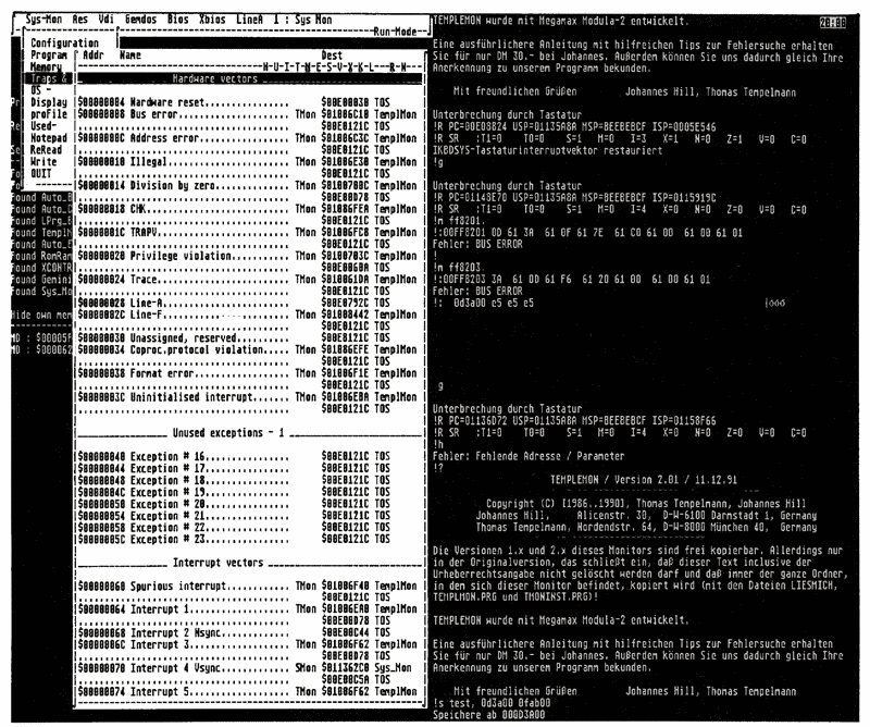 Ein von vielen geschätzter Vertreter der Monitorgattung ist seit langem der »TempleMon«. Schon kurz nach dem Marktdebüt des Atari ST war er, dessen Name eine gewisse Ähnlichkeit zu dem seines Schöpfers Thomas Tempelmann aufweist, verfügbar.