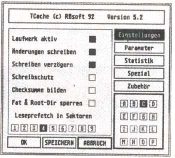 Neben den diversen Konfigurationsmöglichkeiten des eigentlichen Caches wartet das Gespann außerdem mit einem erweiterten Funktionsumfang auf. Dazu gehört auch das Erstellen einer Statistik über die Anzahl der gesamten und der eingesparten Lese- und Schreibvorgänge, sowie über Abweichungen bei der Checksummenüberprüfung. Des weiteren wird es möglich, einzelne Laufwerke vor dem Beschreiben zu schützen, oder den Zugriff auf sie mit einem Paßwort ganz zu sperren. Auch können Sie Betriebssystemzugriffe von Laufwerk A auf andere Laufwerke umleiten und so Programme, die ständig auf Laufwerk A zugreifen wollen, jetzt auch auf Festplatte installieren. Zur Abrundung ist auch noch eine — allerdings nicht resetfeste — RAM-Disk implementiert, deren Größe und Laufwerkskennung Sie frei wählen können. Für die Programmierer unter Ihnen sei noch angemerkt, daß T-Cache einen »TCRB«-Cookie anlegt, über den es möglich ist, T-Cache aus anderen Programmen heraus zu konfigurieren. Ein kleines Beispielprogramm, das Dateien resident in den Cache lädt, liegt dem Programmpaket bei. Außerdem sind die Quelltexte aller Programme über den Autor zu beziehen.