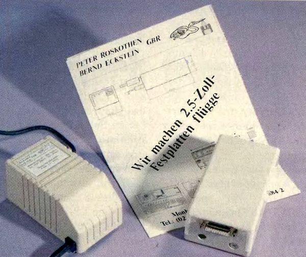 Die 21A-Zoll-Winzlinge von Roskothen & Eckstein kennen Sie ja bereits: Das 40-MByte-Modell erschien noch vor der CeBIT [1]. Die 80-MByte-Version Ă€hnelt ihrem kleineren VorgĂ€nger Ă€uĂerlich wie ein Ei dem andern: Gleiches PlastikgehĂ€use, gleiches abgesetztes Netzteil, hinten DMA-Ein-gang und ein Drehschalter fĂŒr die Unit-Einstellung. Mitgeliefert werden die obligatorische ICD-Treibersoftware nebst Anleitung sowie das »Sammelsurium« (nĂŒtzliche Festplatten-Tools) und ein DMA-Kabel.