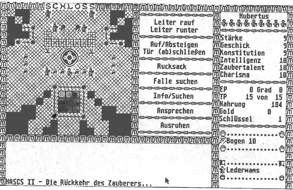 Etwas weniger kompliziert — und daher besser geeignet für Einsteiger — ist »die Wiederkehr des Zauberers«, ebenfalls ein recht umfangreiches Rollenspiel, das langen Spielspaß verspricht.