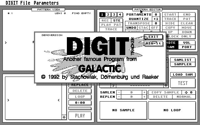 Mit Digit prĂ€sentiert das Galactic-Team einen Soundtracker, wie man ihn vom Amiga her kennt. Vier unabhĂ€ngige Spuren können in Echtzeit ĂŒber insgesamt drei Oktaven transponiert werden. Dabei lĂ€Ăt sich jede Spur mit digitalen Samples belegen. Damit können Naturinstrumente mit hoher KlangqualitĂ€t in eigene Programme eingebunden werden. Die Wiedergabefrequenz betrĂ€gt dabei 12,5 kHz â wenn das nicht ausreicht, verbessern Oversampling-Funktionen den Klang.