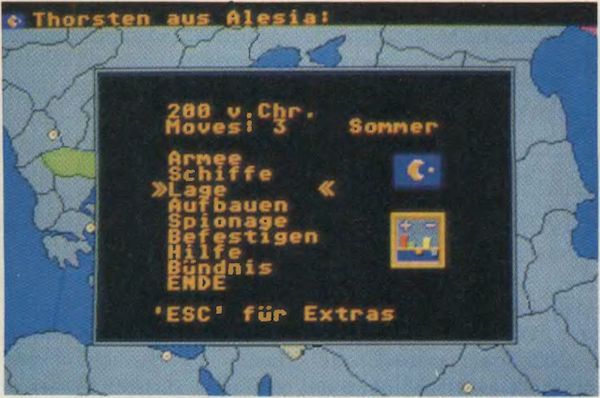 Ballerspiele üben meist nur einen kurzzeitigen Reiz aus und landen dann auf Nimmerwiedersehen in der Diskettensammlung. Ganz anders dagegen Strategiespiele: Hier kann man sich kaum vom Computer losreißen. Ein neues Spiel dieses Genres ist »Cäsar« von der Programmierercrew »Members of good Taste« um Heiko Hartmann. In diesem Spiel gehen sechs Feldherren daran, Herrscher der damals bekannten Welt zu werden. Wie der Name des Programmes schon vermuten läßt: es spielt etwa zur Zeit Cäsars. Das Ziel des Spieles läßt sich selbst bestimmen: die Eroberung des ganzen Mittelmeerraumes oder auch nur das Erreichen einer bestimmten Punktezahl; je nachdem, wieviel Zeit man investieren möchte.