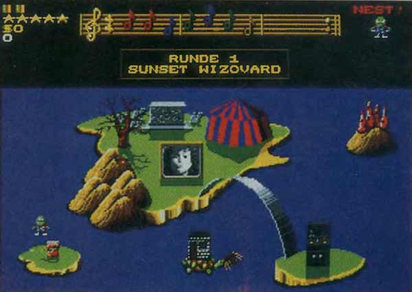 Wizkid eignet sich vor allem für jüngere Spielefreunde. Auch wer sich noch nie mit dem Genre auseinandergesetzt hat, findet schnell den Einstieg: Zu Beginn des Spiels lädt eine Schildkröte den Spieler zu einem Trainings-Level ein, in der sie Tips zum Spielprinzip gibt und dem Spieler Gelegenheit gibt, sich an die Steuerung zu gewöhnen. Sehr praktisch! Profis unter den Geschicklichkeitsfanatikern werden allerdings spätestens nach Level 4 gelangweilt den Joystick zur Seite legen, da sich viele Aktionen einfach zu oft wiederholen. Wie so oft gilt für dieses Spiel: Am besten, man spielt es einmal beim Händler Probe. Leider gibt’s aber gerade da ein Problem: Die wenigsten Händler haben überhaupt noch ST-Spiele direkt im Laden, geschweige, daß sie eines öffnen lassen. Wer sein Spiel wie üblich über einen Versandhändler kauft, muß uns wohl oder übel vertrauen: Wizkid ist bunt, niedlich, witzig aber für Fortgeschrittene nach einer Weile zunehmend langweilig. Für ganz junge Computerfreunde aber durchaus empfehlenswert, (hu)