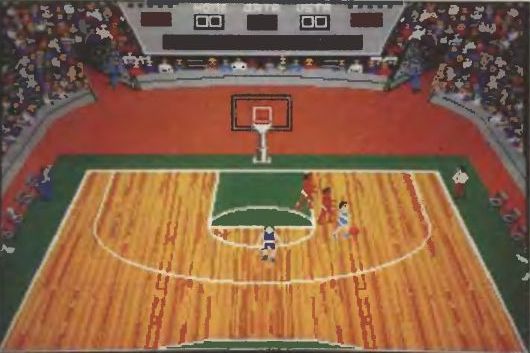 Basketball, auch Korbball genannt, ist eigentlich ein Sport der Langen, doch auf dem Computer hat das keine Bedeutung. Basketball auf dem ST kann man zu zweit oder alleine spielen. Man sieht das Spielfeld immer nur von einer Hälfte aus. Zwei Angreifer stehen zwei Abwehrenden gegenüber. Die hellere Figur steuert man mit dem Joystick, die andere wird vom Computer gesteuert. Für einen Angriff hat man nur begrenzte Zeit zur Verfügung. Man sollte nicht zuviel tribbeln und wenn man auf den Gegener aufläuft gibt es ein "Stürmerfaul". Auch der Mitspieler, der vom Computer gesteuert wird, versucht den Ball in den Korb zu spielen. Hält dieser den Ball und der Spieler mit seiner Figur steht unter dem Korb, versucht er, ihn anzuspielen. Deshalb ist es sinnvoll, den zweiten Mann nicht auszuschliessen, sondern ins Spiel zu integrieren. Selbst in der Anleitung steht, daß Basketball ein Spiel ist, in welchem man nur mit 'Teamwork' ausharren kann.