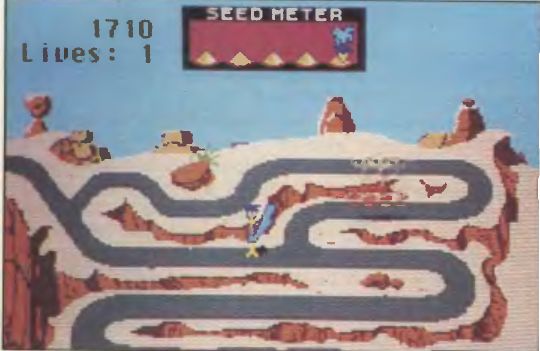 Wer kennt ihn nicht, den lustigen Roadrunner, der pfeilschnell durch die Wüste rast. Sein einziger Feind ist Wile E. Coyote., der mit allen Mitteln versucht, unseren Freund den Roadrunner zu fangen. Kein noch so gemeiner Hinterhalt und jedes Hilfsmittel sind ihm recht, um sein Ziel zu erreichen. Stürzen Sie sich in dieses rasante Spiel und helfen Sie dem 'Raser', seinem Verfolger zu entkommen. Dabei müssen möglichst alle Körnerhaufen aufgegessen werden, denn das bringt Punkte. Der Kojote nimmt schon im zweiten Level ein Jet-Pack zu Hilfe, denn zu Fuß ist er nicht schnell genug. Sein Repertoire umfaßt aber auch noch den Pogo-Stick und ein Jet-Skateboard, mit denen er gefährlich durch die Gegend braust. Es gibt aber noch zusätzliche Hindernisse, wie z. B. LKWs, Felsbrocken, Gletscherspalten und Minen, denen Beide ausweichen müssen. Man kann deshalb auch versuchen, den Kojoten in diese Hindernisse hineinzulocken.