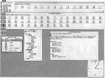 Eine weitere Überraschung war, daß der Interpreter in Maßen mit anderen Programmen gleichzeitig aktiv im Speicher sein konnte. Ein Test unter MULTIGEM zeigte, daß der Interpreter nicht wie befürchtet, sofort abstürzte. Allerdings läuft er nicht mit jedem Programm. Er muß als letzter Prozeß gestartet werden, jedes Programm nach ihm schickt den Interpreter in das Nirwana. Da, wie schon erwähnt, der Interpreter keinen GEM-Editor enthält, kann man natürlich kein echtes Multitasking erwarten. Vielmehr existiert ein Menüpunkt, mit dem man auf eine GEM-Menüleiste umschalten kann. Diese enthält allerdings nur die Auswahl an Accessories und die Möglichkeit, wieder auf den Editor-Bildschirm zurückzuschalten. Da es mit dem MULTIGEM bereits eine Multitasking-Erweiterung gibt, die angesichts der Hardware eines TT bei dessen Besitzern auch recht beliebt ist, ist es umso unverständlicher, daß OMIKRON. hier nicht die entsprechenden Änderungen vorgenommen hat. Zwar weisen Entwickler bei unsauberer Programmierung in der Regel darauf hin, daß das Programm auf dem offiziellen Betriebssystem läuft und auf nicht von ATARI autorisierte Zusätze keine Rücksicht genommen werden kann, jedoch gibt es auch für ATARI-GEM Programmierrichtlinien. Mit der offiziellen Ankündigung des multitaskingfähigem Betriebssystems MultiTOS auf der diesjährigen CeBit für Ende diesen Jahres ist der nächste Konfliktpunkt bereits vorprogrammiert. Will OMIKRON. etwa wieder bis ein Jahr nach Erscheinen des neuen TOS warten, um dann endlich eine voll lauffähige Version 5.0 vorzustellen? Es bleibt in der Verantwortung jedes einzelnen, dafür Sorge zu tragen, daß die Erzeugnisse auch auf zukünftigen Rechnergenerationen der TOS-Familie funktionieren. Dies gilt aber im ganz besonderen Maße für Entwickler von Programmiersprachen, da sie als Multiplikatoren fungieren. Das extrem schlechte Vorbild des alten OMIKRON.BASIC hätte den Entwicklern Anstoß sein sollen, auch in diesem Punkt den Editor komplett neu zu entwickeln.
