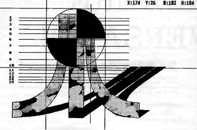 Bewegte Objekte im Vordergrund erstellt man am besten auf einem Extrabildschirm und fügt sie dann über die Blockfunktionen in die bereits vorgefertigten Hintergrundbilder ein. Um jedoch gleichmäßige Bewegungen zu erreichen, ist der Bastler auch hier gut beraten, die einzelnen Bewegungsphasen sorgfältig zu planen. Grafstar hilft dabei auf mancherlei Art. Drehungen wie in unserem Beispiel kann man über »Block drehen« ziemlich einfach herstellen. Die Winkelanzeige ermöglicht dabei von Bild zu Bild eine genau definierte Veränderung des Drehwinkels. Die Koordinatenanzeige wiederum erlaubt es, bei einer linearen Bewegung über den Bildschirm das Objekt punktgenau zu plazieren.